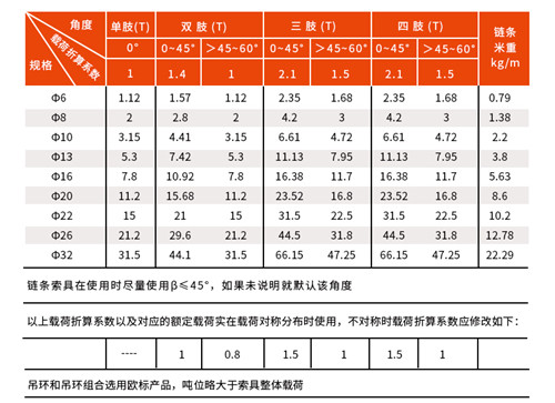 3、鏈條不同,其工作載荷不同,可根據(jù)客戶要求的計(jì)算工作載荷。