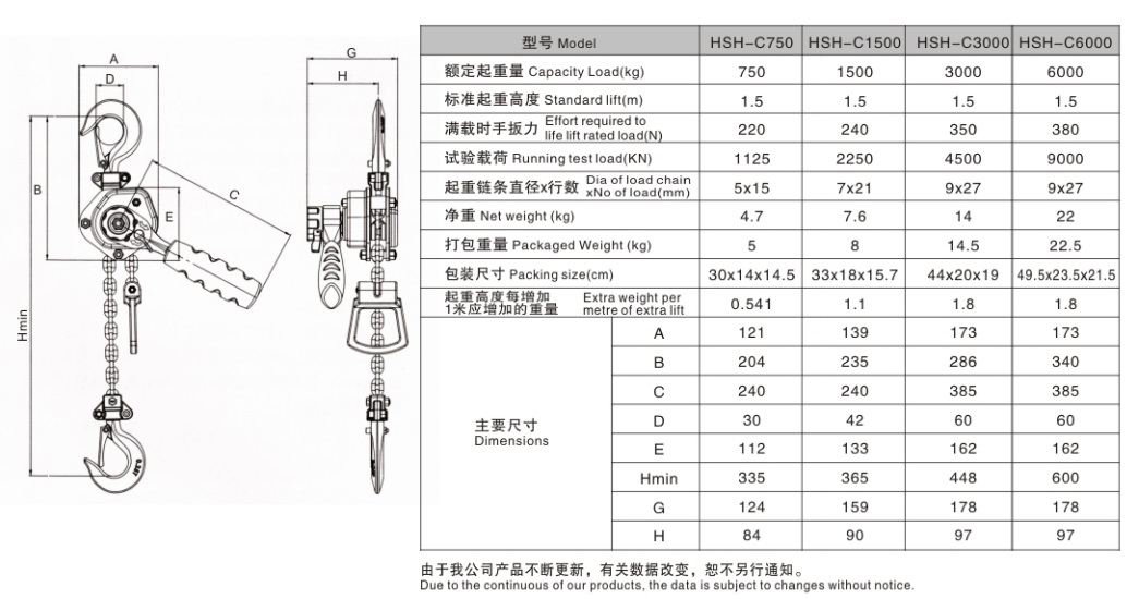 1、開(kāi)放式框架設(shè)計(jì),易清潔。2、可選配限載器。3、自動(dòng)雙棘爪剎車(chē)系統(tǒng)。4、標(biāo)準(zhǔn)配置高強(qiáng)度合金鋼起重鏈條和電鍍鋅手拉鏈條?!?